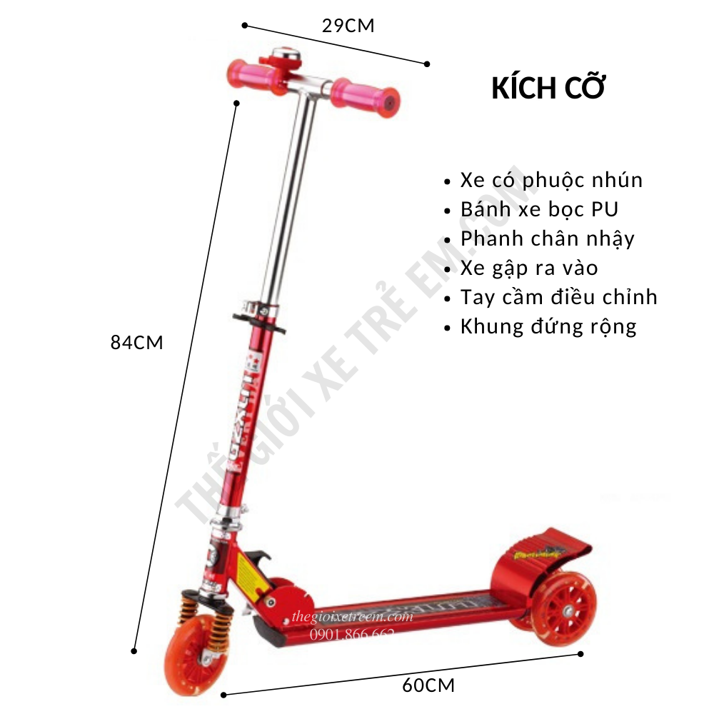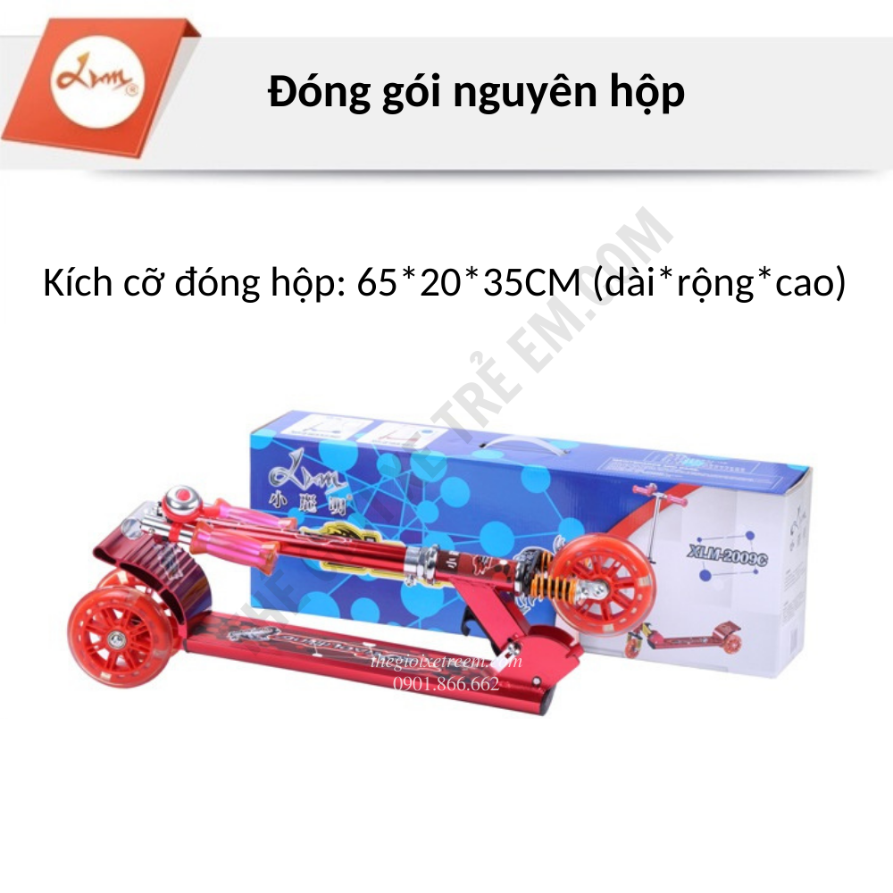 • Bánh xe bọc silicon bám đường, chống trượt, có đèn LED đẹp